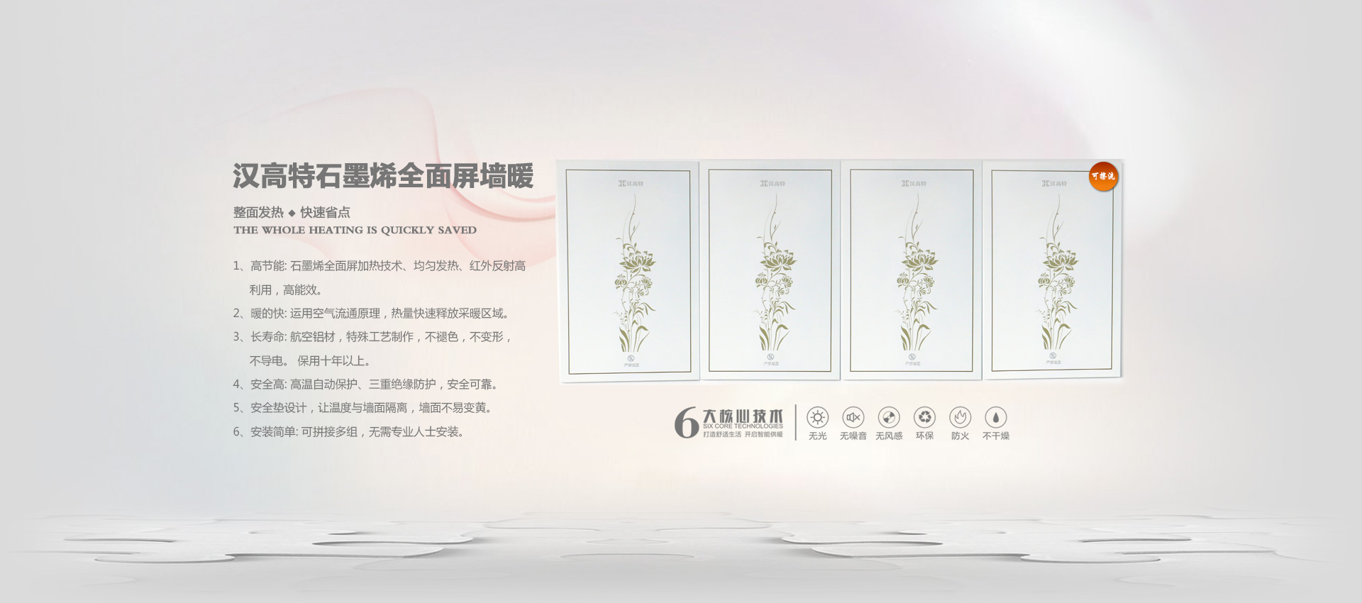 漢高特自主研發(fā)的新型石墨烯電地暖、石墨烯電采暖、電熱膜電地暖、碳纖維電暖、碳晶墻暖畫(huà)、電地暖廠家加盟、電熱膜工廠,采用新設(shè)計(jì)、新材料在行業(yè)內(nèi)首創(chuàng)了耐強(qiáng)酸、耐強(qiáng)堿、防火阻燃、防水防潮等特點(diǎn)。產(chǎn)品暢銷江蘇、四川、甘肅、山西、河北、河南、內(nèi)蒙、新疆等地。